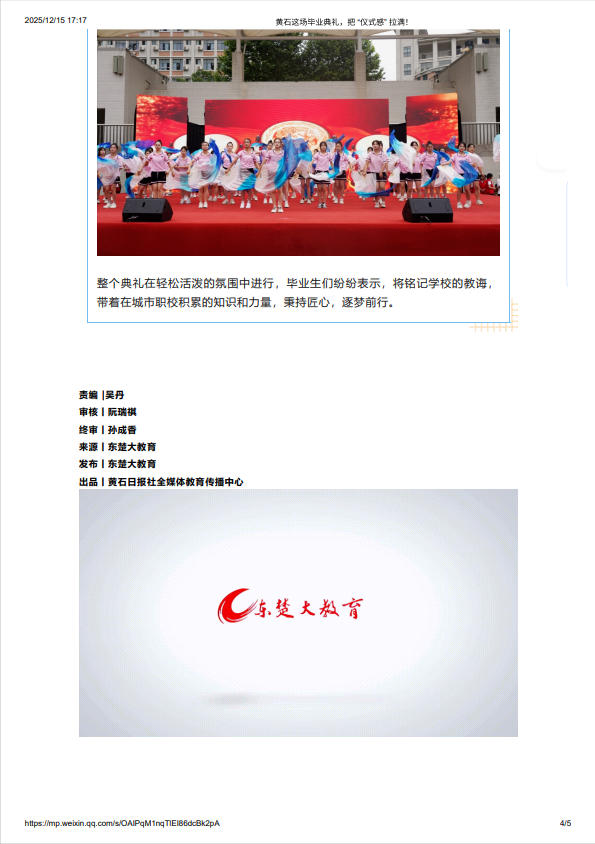 东楚大教育:黄石这场毕业典礼,把 “仪式感” 拉满!