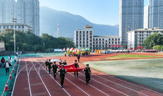 金秋送爽,丹桂飘香。为进一步丰富校园文化生活,增强学生身体素质,培养团队协作与拼搏精神,11月5日至10日,我校成功举办秋季田径运动会。5日上午,开幕式在校运动场隆重举行,国旗班率先入场,“橙子方队”及各班级方阵依次亮相。方阵着装统一、队列整齐、口号响亮,创意入场赢得师生喝彩。啦啦操队员们舞姿灵动,动感节拍点燃全场;广播体操方阵整齐划一,舒展动作尽显风采,为运动会增添别样精彩。校长蔡暖心致开幕词,校党委书记官本文宣布运动会开幕。